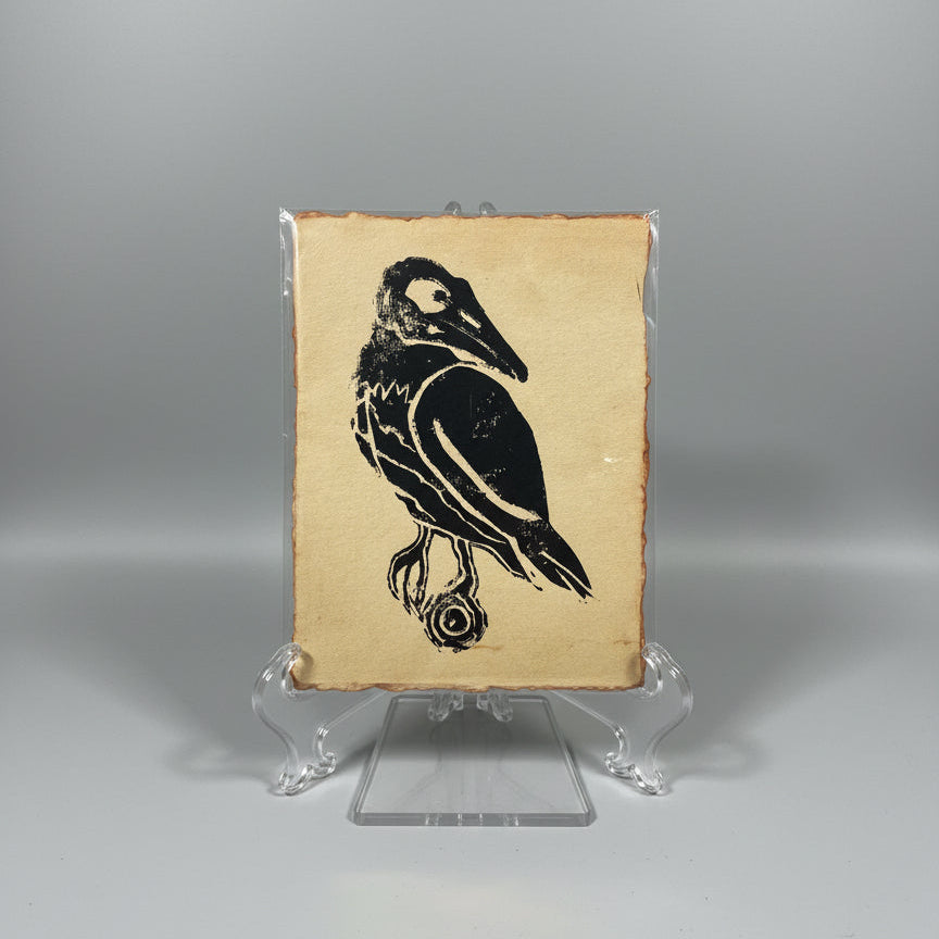 The Rave is a quirky, mysterious creature captured in a bold linoprint. With its playful mix of dark and whimsical charm, it's the perfect statement piece for any space.